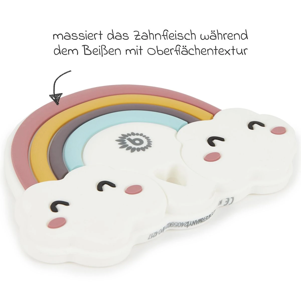 1 Bieco Beißring aus Silikon – Regenbogen & Wolken