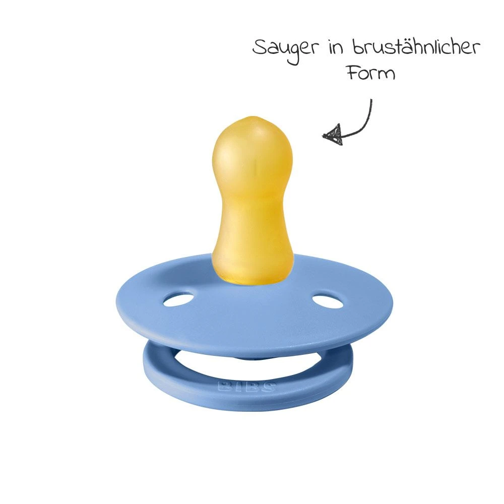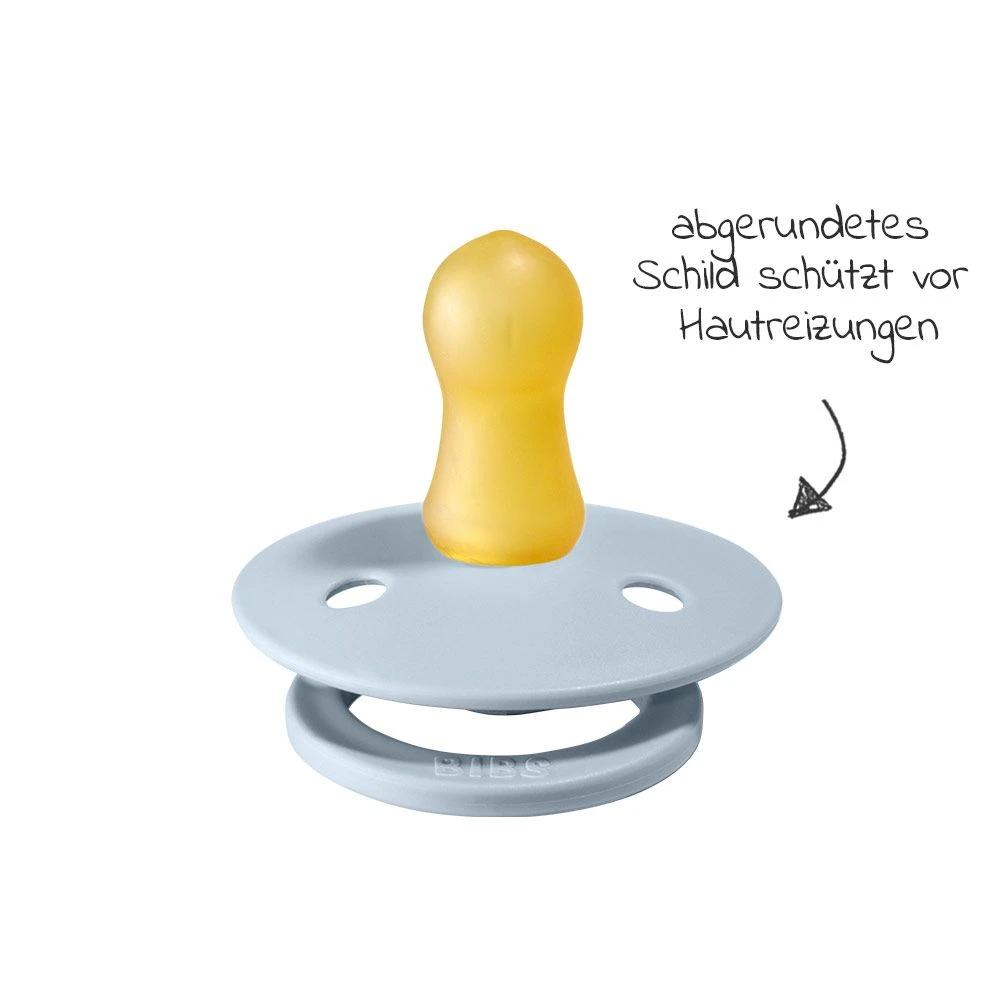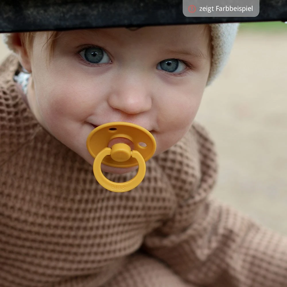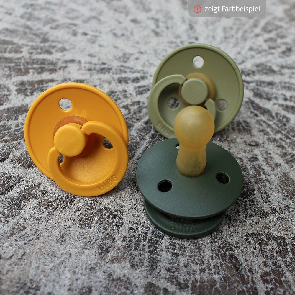 Das 2-teilige Schnuller-Set – Colour – Gr. 0-6 M von BIBS besteht aus reinem Naturkautschuk – frei von BPA, PVC & Phthalaten. Das samtweiche, flexible und hautschonende Material vermittelt Deinem kleinen Spatz ein natürliches Sauggefühl. Durch die kirschförmige Form und das runde Schild ahmt der Schnuller die Form der Mutterbrust auf natürliche Weise nach und ist besonders kiefergerecht.
