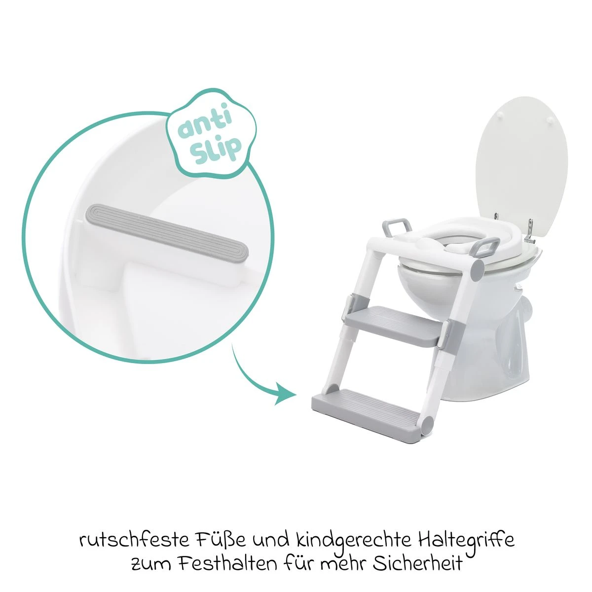 Wenn Dein Kind bereit ist, auf die Erwachsenentoilette umzusteigen, ist der Fillikid Toilettentrainer die ideale Unterstützung. Dank der dynamischen Höhenverstellung passt er auf jede Standardtoilette und ermöglicht Deinem Kind einen sicheren und komfortablen Zugang. Die extra breiten Stufen und praktischen Haltegriffe sorgen für Stabilität und Sicherheit, während Dein Kind selbstständig die Toilette erreicht.