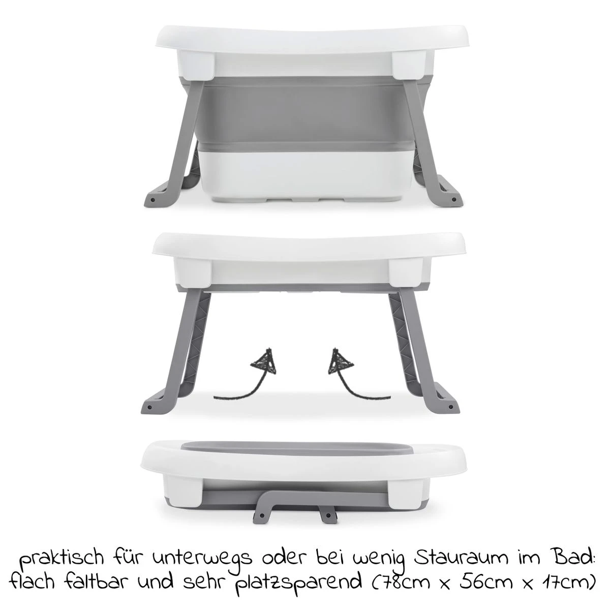 In der Hauck Badewanne Wash N Fold L in White Stone erlebt Dein Kleines während dem warmen Planschvergnügen viele schöne Eindrücke. Damit das Köpfchen dabei möglichst sicher liegt, ist die Wanne mit weichen, abgerundeten Kanten ausgestattet. Auf dem Sitzhocker kann Dein Nachwuchs bequem Platz nehmen. Die kompakten Maße 78 x 56 x 44 cm bieten dem kleinen Weltentdecker dabei ausreichend Platz und sparen im Vergleich zu einer normalen Badewanne jede Menge Wasser.
