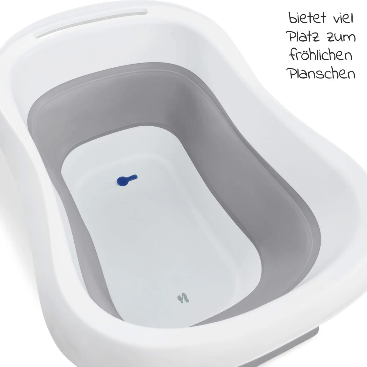 Damit Du ein Gefühl für die passende Wassertemperatur hast, zeigt Dir der Farbwechsel des Ablaufstöpsels an, ob das Wasser zu heiß oder angenehm ist. Für einen stabilen Stand auf geradem Untergrund sorgen die ausklappbaren Füße. Ist das Babybad beendet, lässt Du das Wasser bequem über den Abflussstöpsel aus. Ist die Wanne leer, drehst Du sie einfach um, drückst den Wannenboden herunter und klappst die Standfüße wieder ein.