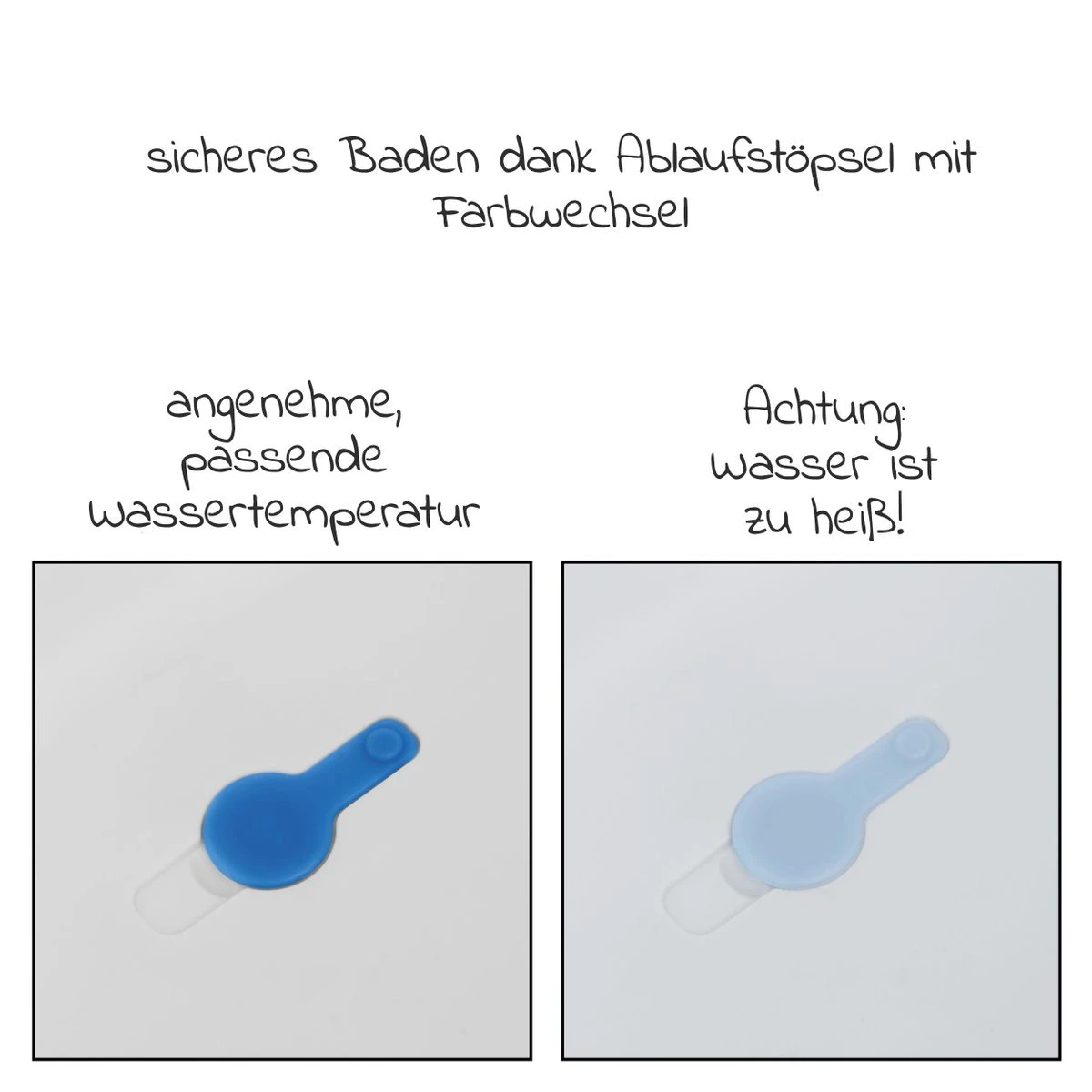 - die passende Badetemperatur immer im Blick mit dem Ablaufstöpsel mit Farbwechsel