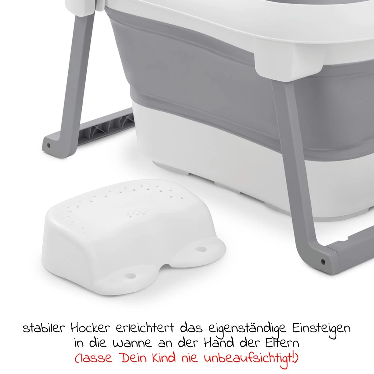 - sichereres Baden dank dem stabilen Stand, weicher, abgerundeter Materialien uvm.