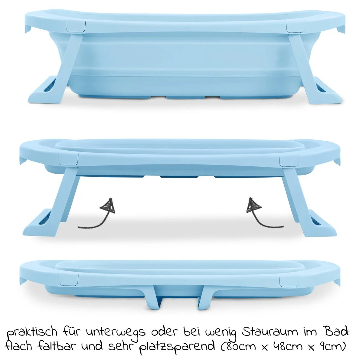Die Hauck Badewanne Wash N Fold M – Light Blue ist der ideale Reisebegleiter und bereitet Deinem kleinen Schatz jederzeit ein schönes Planscherlebnis. Häufig gibt es in Hotels nur eine Dusche oder eine normale Badewanne, die für Dein Baby noch viel zu groß ist. Die Hauck Wash N Fold Baby Babywanne kannst Du zusammengefaltet mitnehmen, so dass sie kaum Platz wegnimmt. Auch für Zuhause ist sie sehr praktisch und lässt sich bei Nichtbenutzung einfach zusammengeklappt zur Seite stellen dank flachem Maß.