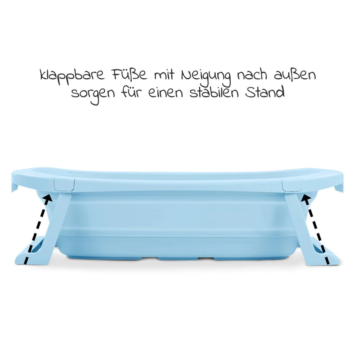 - Sicherheitshinweis: Vor jeder Verwendung sollte die korrekte Verriegelung der Standfüße überprüft werden, die Wanne ist nur auf dem Boden zu verwenden