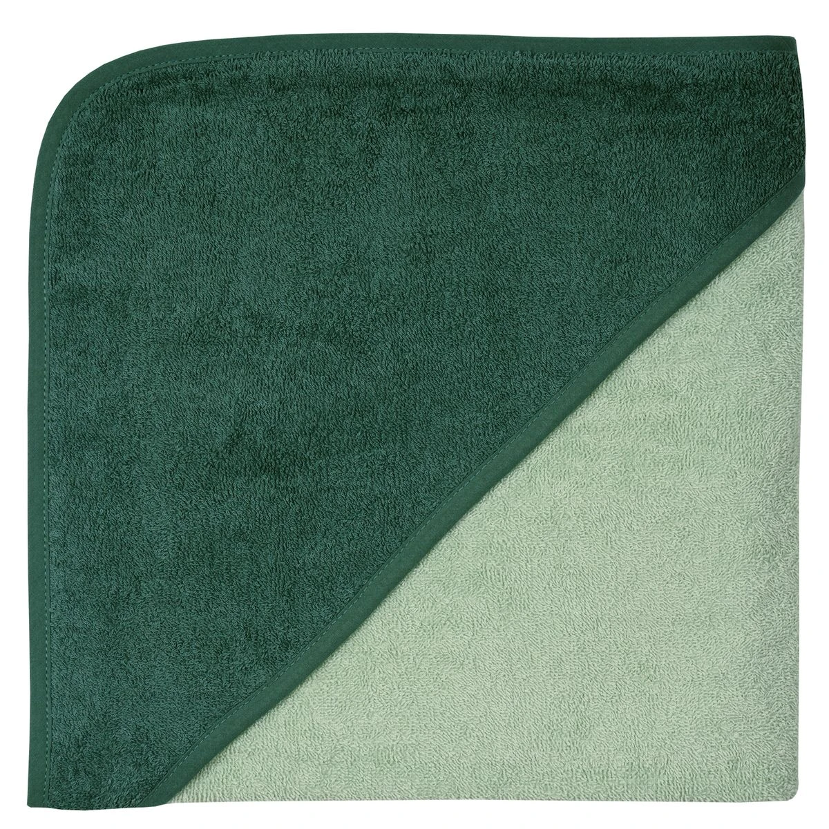 1 Wörner Mull-Kapuzenbadetuch 100 x 100 cm Uni Piniengrün Hellolivgrün
