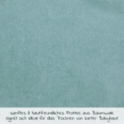 Dank der atmungsaktiven Bio-Baumwolle verhält sich das Badehandtuch sehr sanft zur Babyhaut. Außerdem ist der weiche und dicke Frottee sehr saugfähig, so dass Dein Kleines im Nu trocken ist.