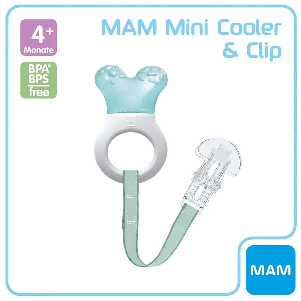 MAM Beissring mit Halteband und Clip – Türkis