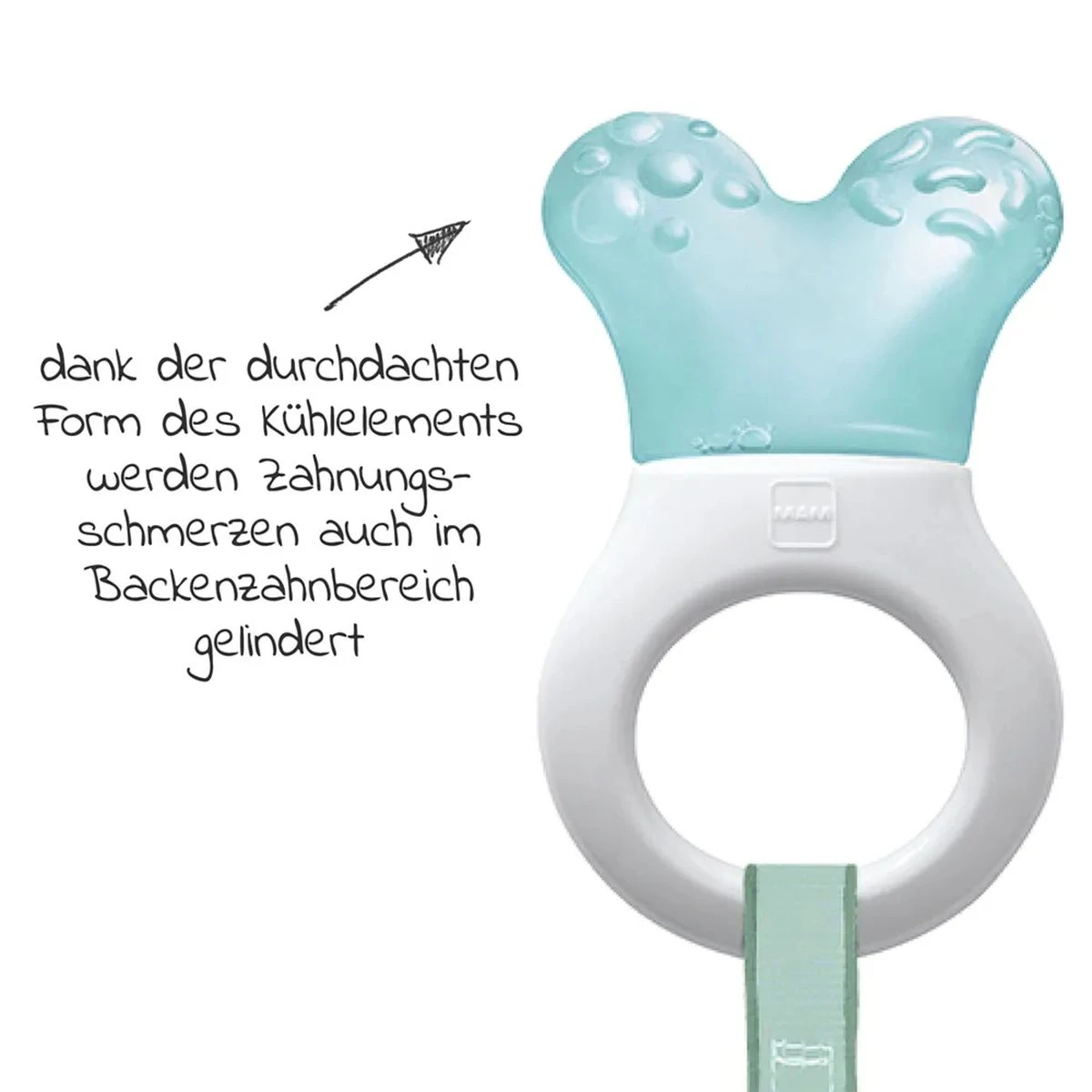 - lindert die Zahnungsschmerzen durch die Kühlung & Beißstrukturen