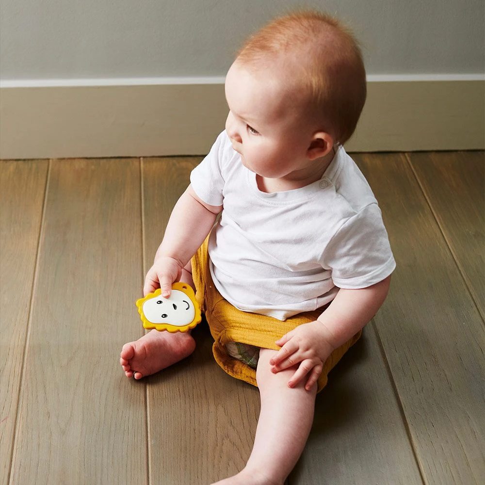 Auf den weichen Zahnungsnoppen der Beißringe können Zahnungsgele aufgetragen werden. So bereiten die niedlichen Zahnungshelfer schon früh und nebenbei auf das Zähneputzen mit den beiden Fingerbürsten vor. Die interessanten Formen mit den langen Armen und der Löwenkopf lassen sich von kleinen Händen wunderbar greifen. Unterschiedliche Texturen regen zum Fühlen und Erkunden an. Dadurch werden spielerisch die motorischen Fähigkeiten und die Sinne weiterentwickelt.