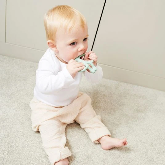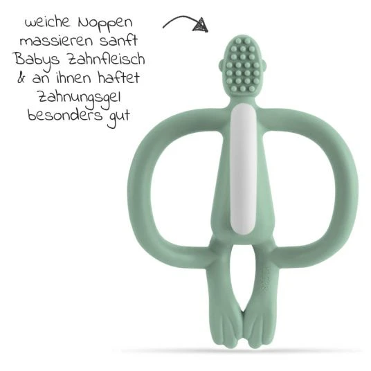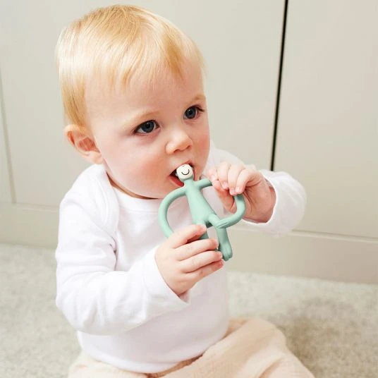 Wenn sich die ersten Zähnchen anbahnen, ist das Beiß-Bedürfnis zur Schmerzlinderung bei den Kleinsten sehr groß. In der Zahnungsphase ist der Matchstick Monkey Beißring Affe in Mintgrün ab 3 Monaten ein willkommener Helfer für Dein Baby: Das BPA-freie, weiche Silikon in Lebensmittelqualität bietet sich zum Beißen an und massiert dabei das schmerzende Zahnfleisch.