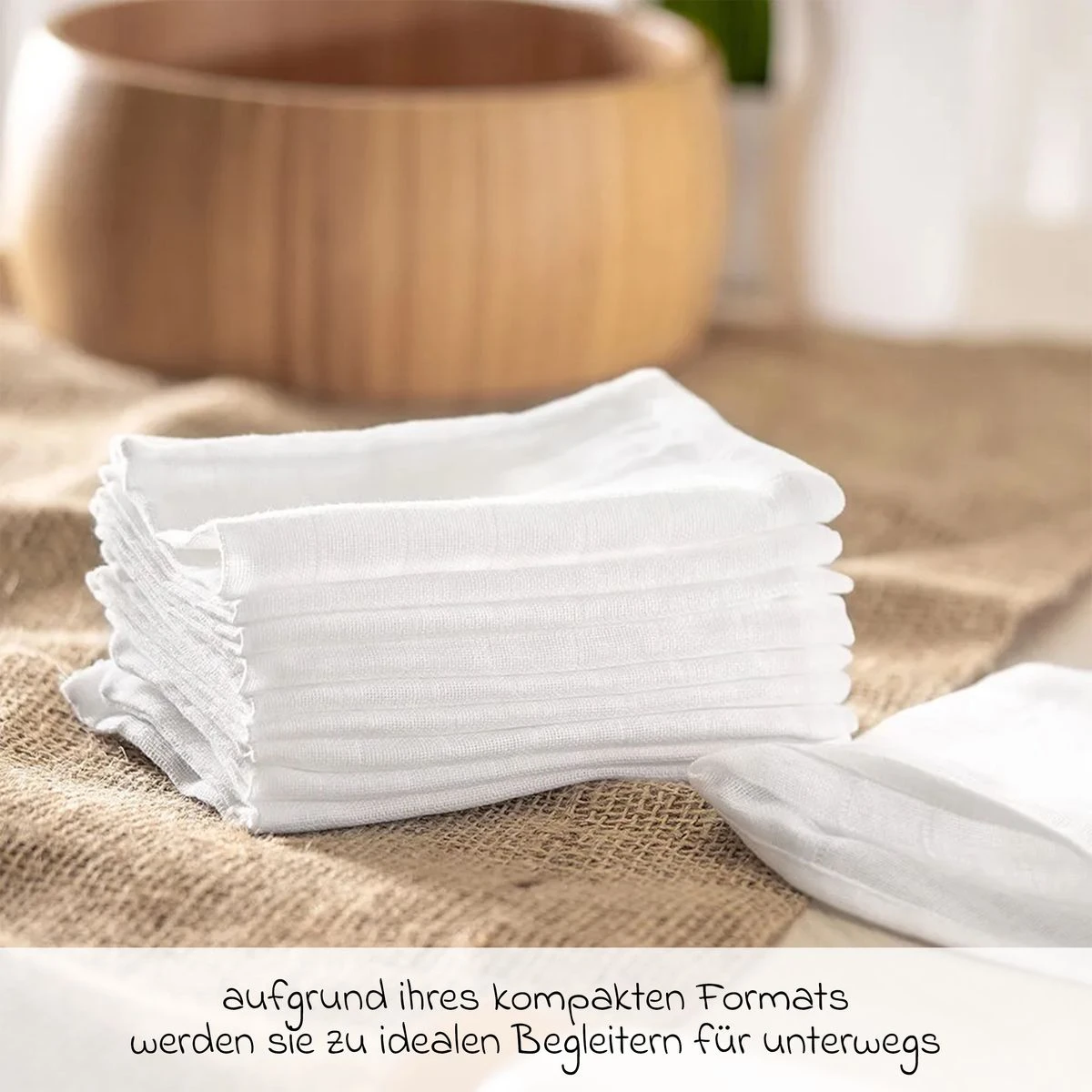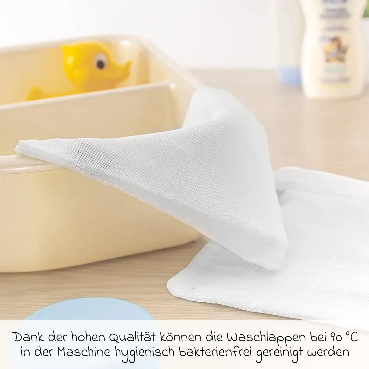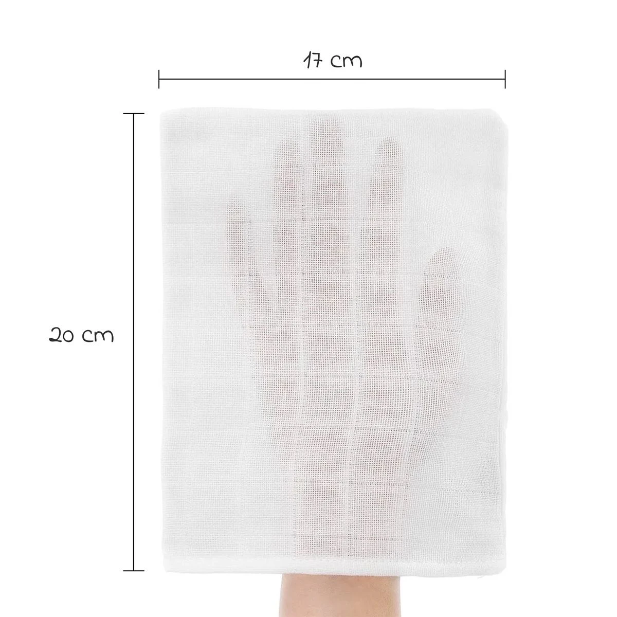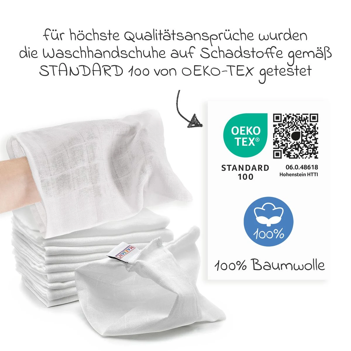 - 10 Makian Mull-Waschhandschuhe 15 x 20 cm – Weiß
