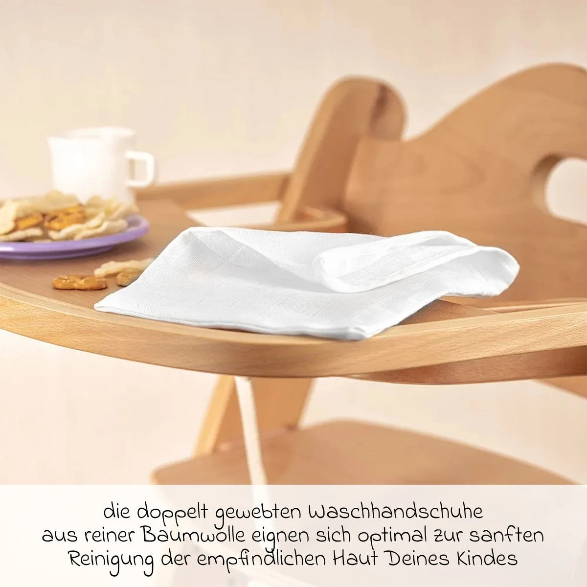 Bestehend aus 100% Baumwolle, sind die Waschhandschuhe für die zarte Babyhaut sehr angenehm. Die unverzichtbaren, hochwertigen und langlebigen Multitalente sind sehr pflegeleicht und lassen sich bei 90°C in der Maschine waschen. Aufgrund ihres kompakten Formats werden sie auch zu idealen Begleitern für unterwegs.