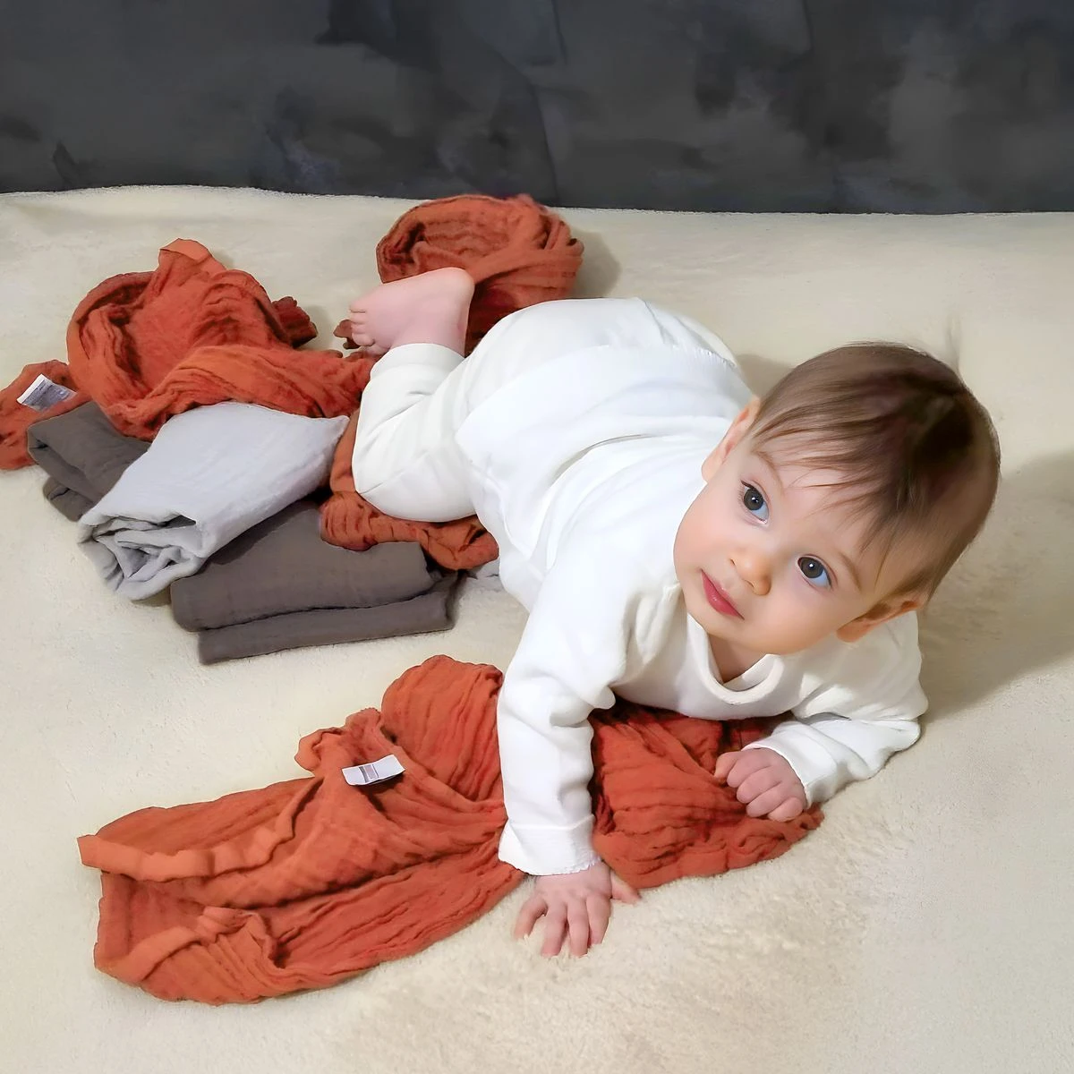 Die Mullwindeln 70 x 70 cm im 6er Pack von Makian sind universell einsetzbar. Die doppelt gewebten Windeln aus reiner Baumwolle und mit verstärkter Umrandung dienen als Spucktuch, Unterlage oder Wickelwindel. Auf Grund der hohen Saugfähigkeit und der hautfreundlichen Eigenschaften werden die Mullwindeln zum unverzichtbaren Begleiter für Mütter.