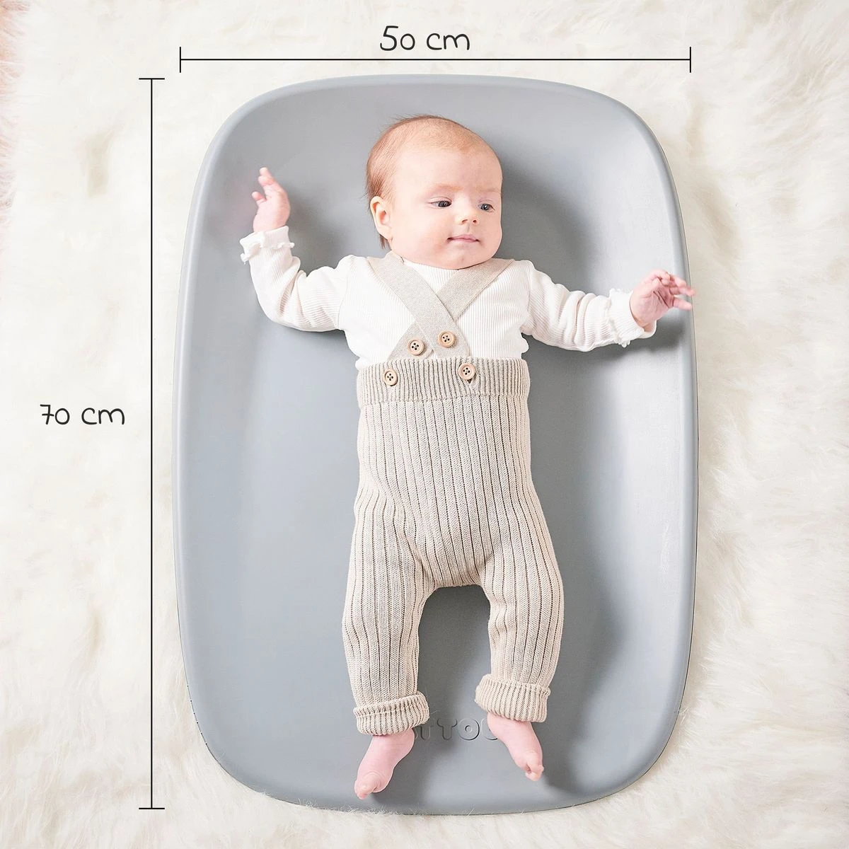 Praktisch ist zudem die glatte Oberfläche ohne jegliche Nähte oder Ritzen: Sie lässt sich leicht reinigen und bleibt so hygienisch sauber. Da die Unterlage wenig Gewicht und ein kompaktes Maß hat, lässt sie sich auch gut in den nächsten Urlaub mitnehmen. Der schlichte Farbton ist für fast jeden Einrichtungsstil passend.