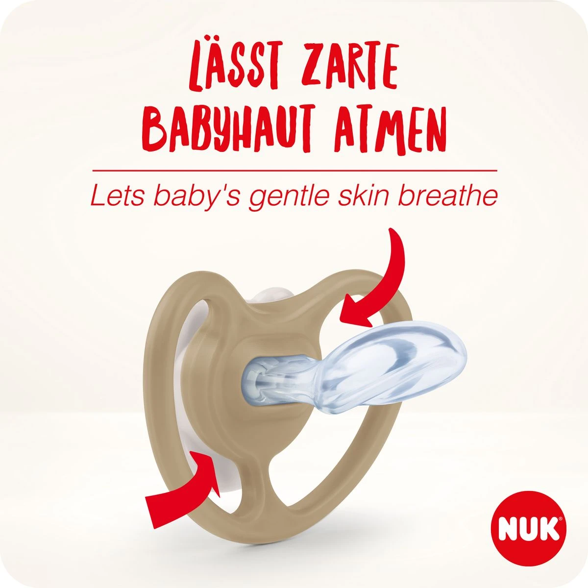 Unsere Kleinsten haben nicht nur von Beginn an ihren eigenen Kopf, sondern auch körperlich völlig unterschiedliche Eigenschaften. Die noch so junge und feine Haut der Babys ist besonders empfindlich. Der Schnuller Space Night von NUK lässt die sensible Babyhaut atmen. Seine besonders große Öffnungen sorgen für eine maximale Luftzirkulation und somit für trocknere Babyhaut.