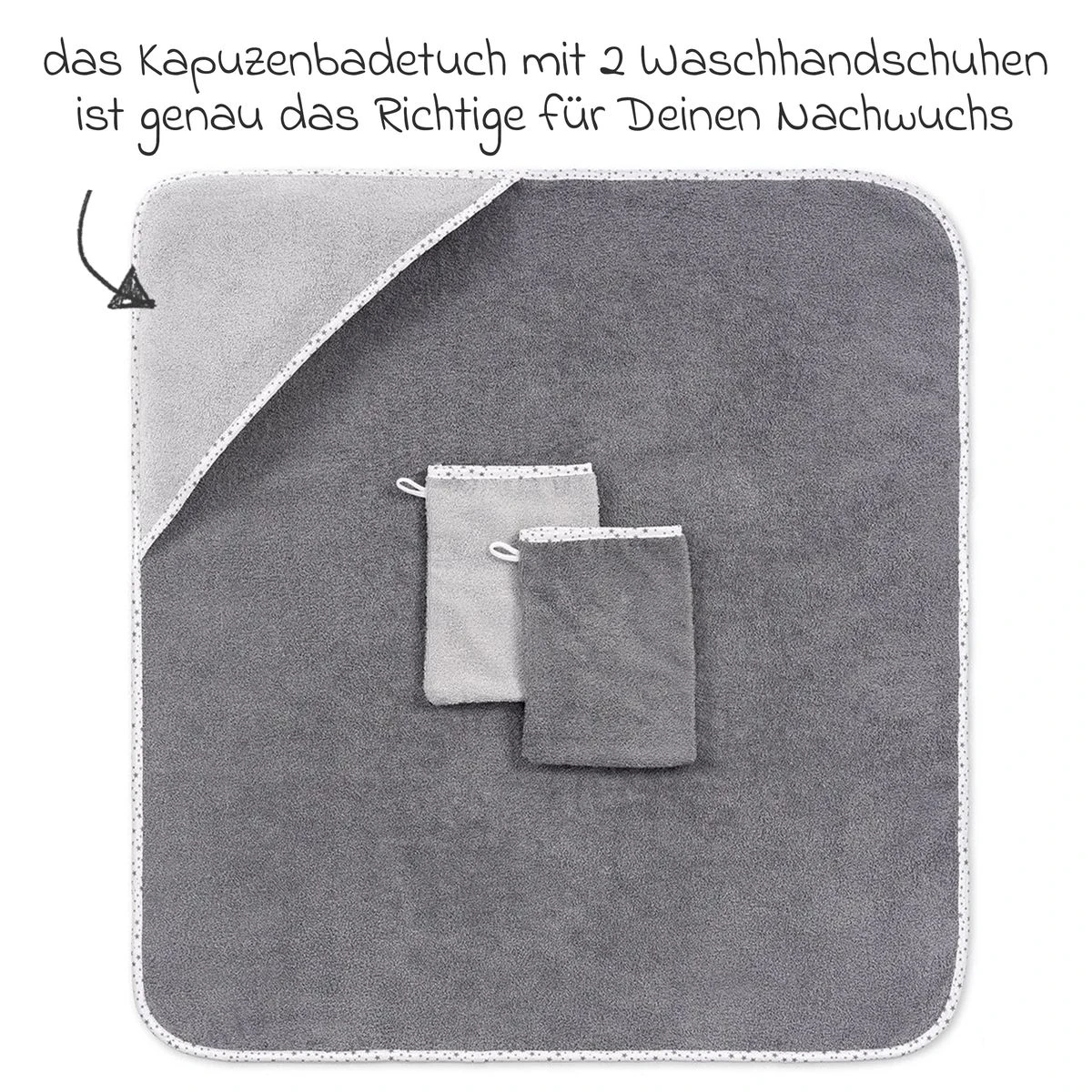 - Abmessungen Kapuzenbadetuch: 80 x 80 cm