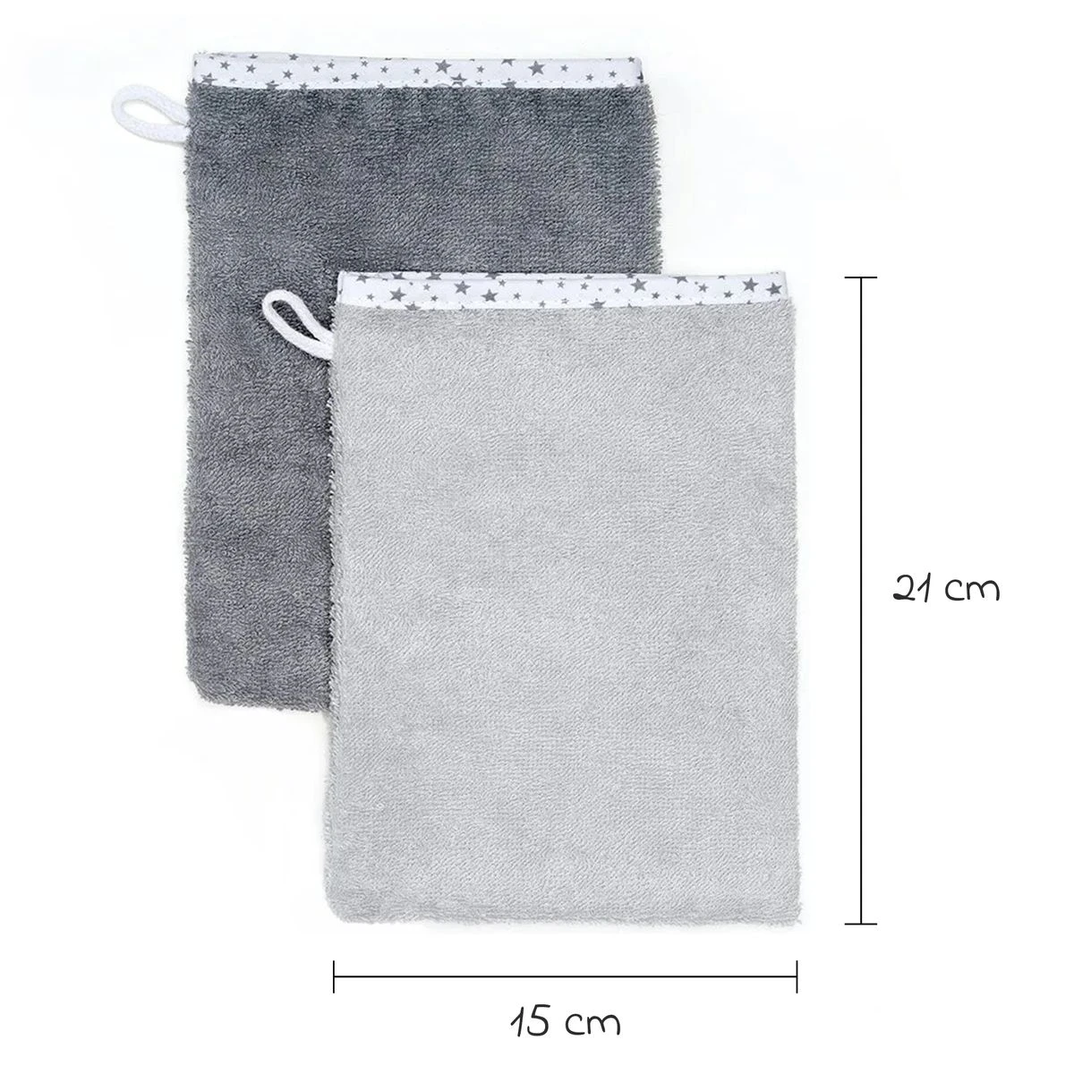 - Abmessungen Waschhandschuhe: 15 x 21 cm
