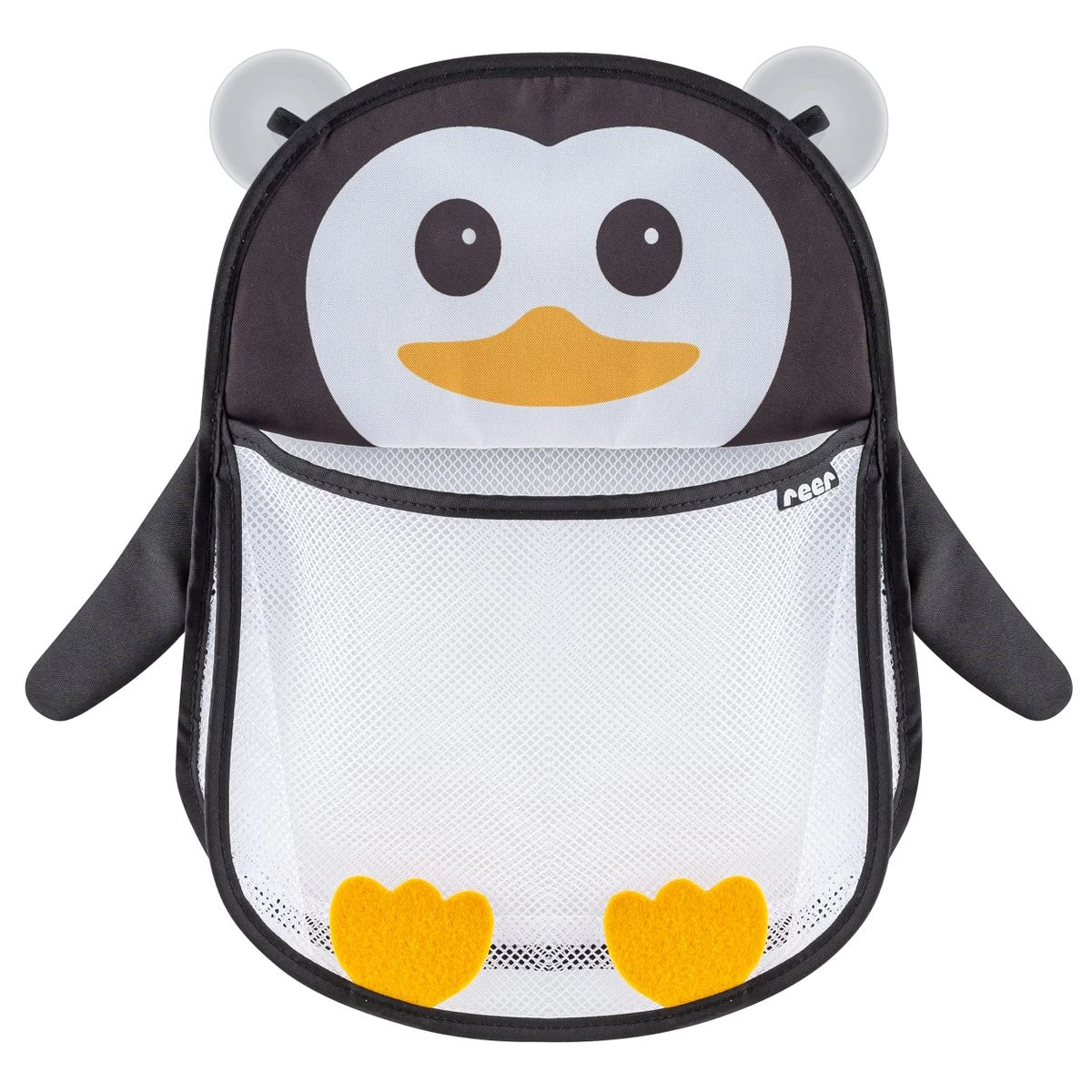 Auch während dem Babybad darf unterhaltsames Spielzeug nicht fehlen. Doch wohin soll es nach dem Wasserspaß aufgeräumt werden? Das Reer Badespielzeug-Netz MyHappyPingu ist der ideale Platz dafür nach dem Spielen. Mit 2 praktischen Saugnäpfen lässt es sich platzsparend an der Wand befestigen und rückstandslos wieder abnehmen.