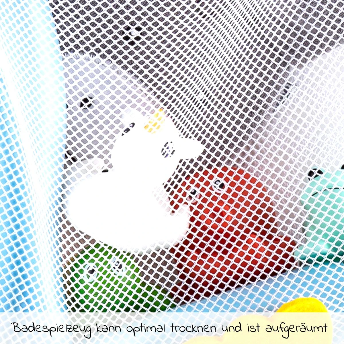 - platzsparende Aufbewahrung für Badespielzeug, Shampoo uvm. im Bad