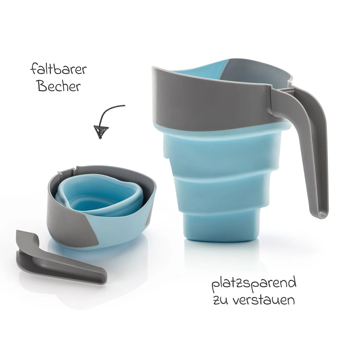 - leichter Transport & Aufbewahrung durch faltbaren Becher und abnehmbaren Griff