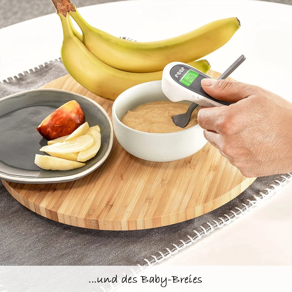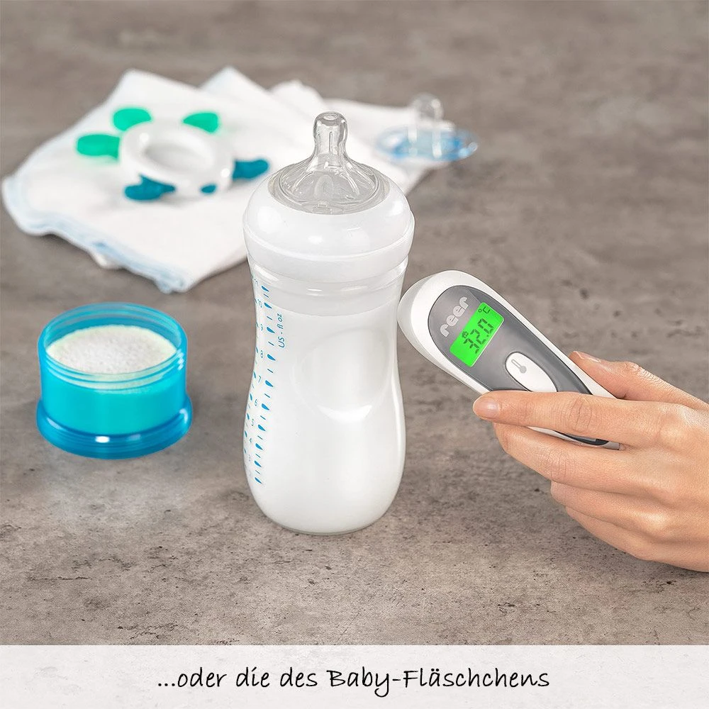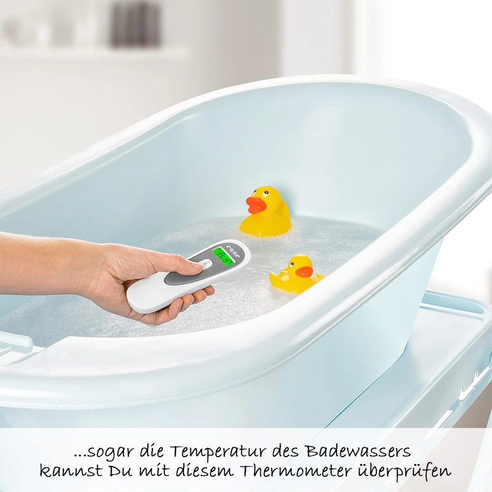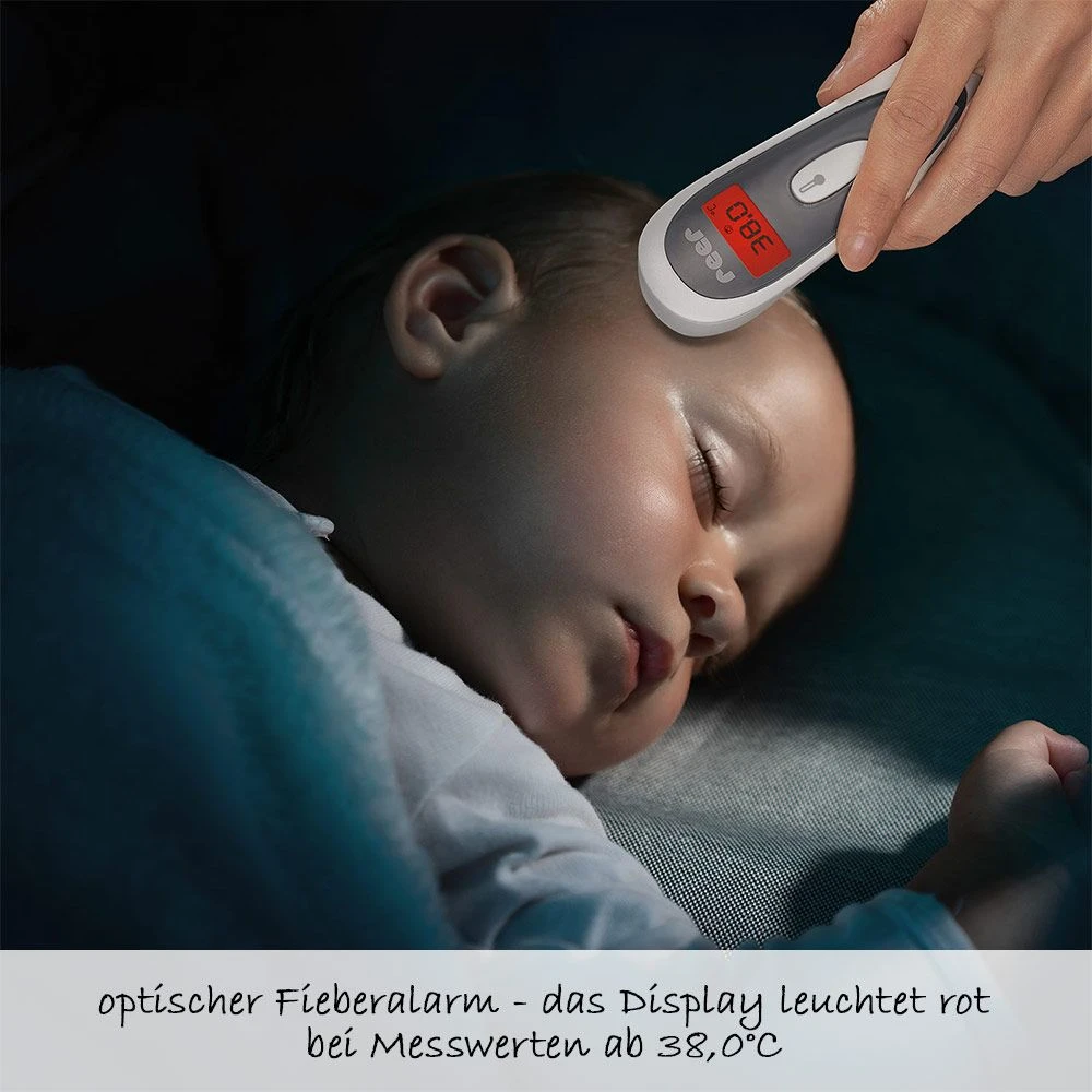 Mit dem Infrarot-Thermometer 3in1 Colour SoftTemp von Reer wird Fiebermessen zum Kinderspiel. Dank hochwertigem Sensor mit moderner Infrarottechnik findet eine berührungsfreie und hygienische Messung statt, die Du sogar bei Deinem schlafenden Baby durchführen kannst. Das Ergebnis wird Dir bereits nach einer Sekunde auf dem großen; beleuchteten Display gut leserlich angezeigt.
