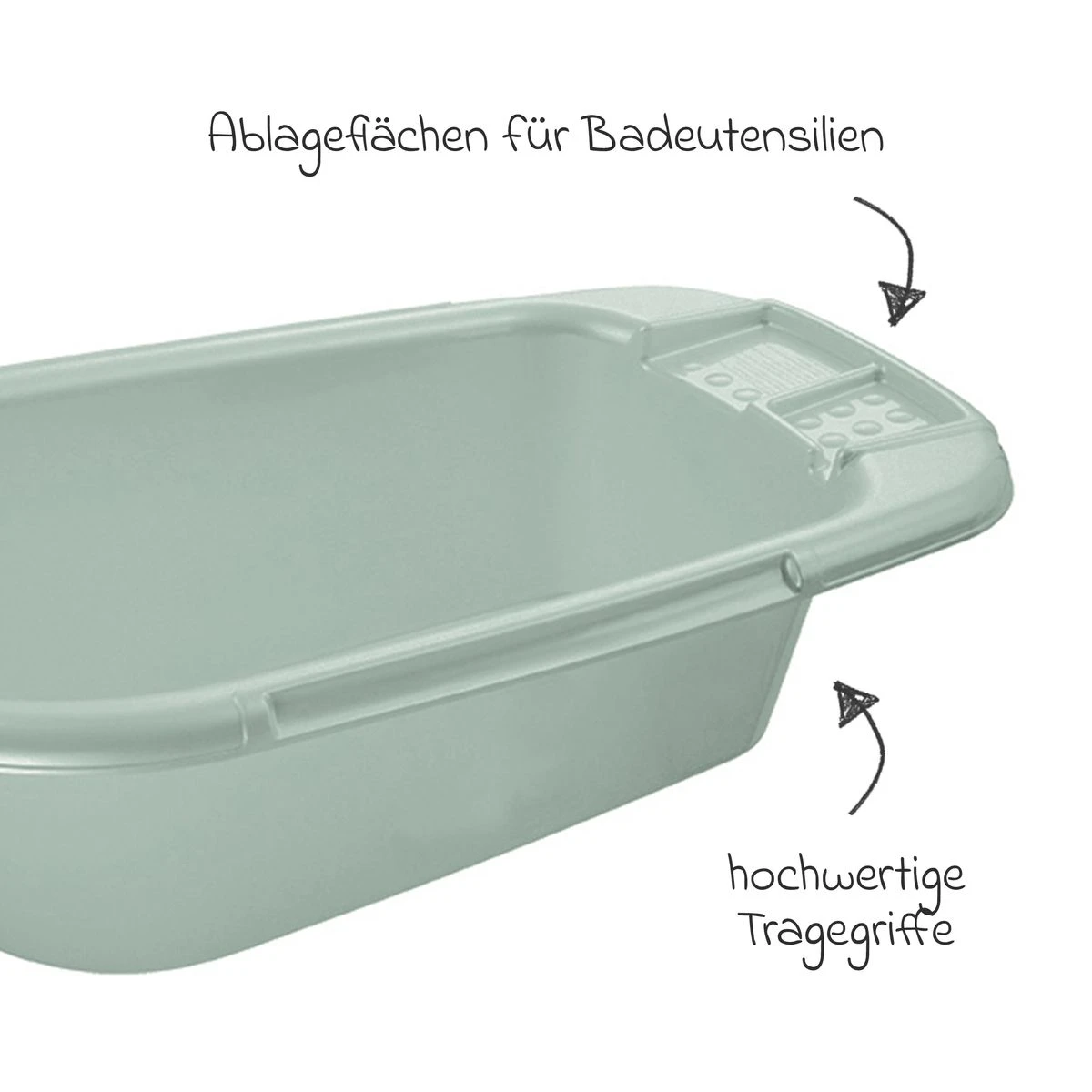 Die Ava-Badewanne verfügt über eine integrierte Sitzmulde, die Deinem Baby zusätzlichen Halt bietet und das Baden noch sicherer macht. Eine praktische Seifen- und Zubehörablage sorgt dafür, dass alle wichtigen Utensilien immer griffbereit sind. Der integrierte Ablaufstopfen ermöglicht ein einfaches Entleeren der Wanne, ohne sie kippen zu müssen.